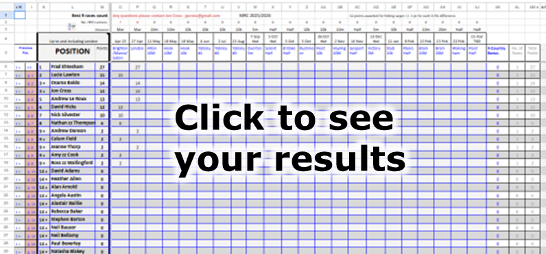 The Multi-Race Challenge (MRC) is a handicap series of 21 local races over the year starting with the London (or other) Marathon in April through to the Fleet Half in the following March.