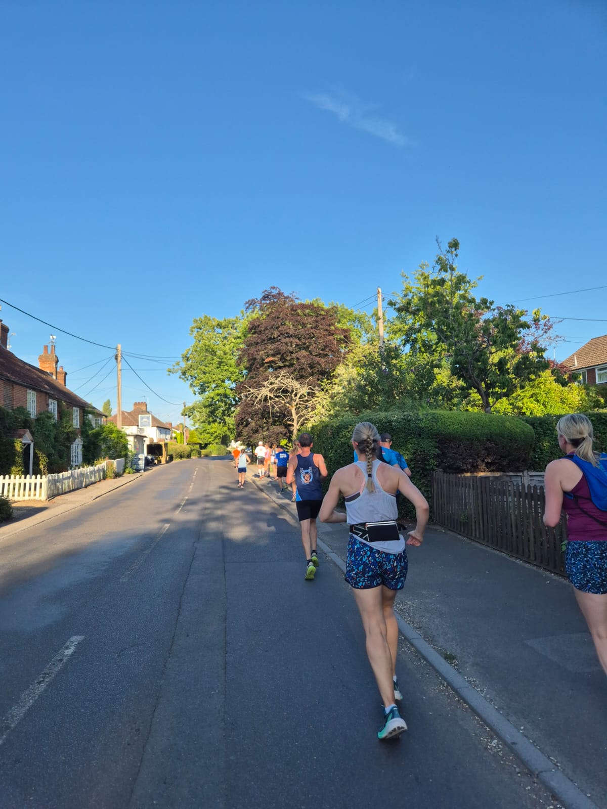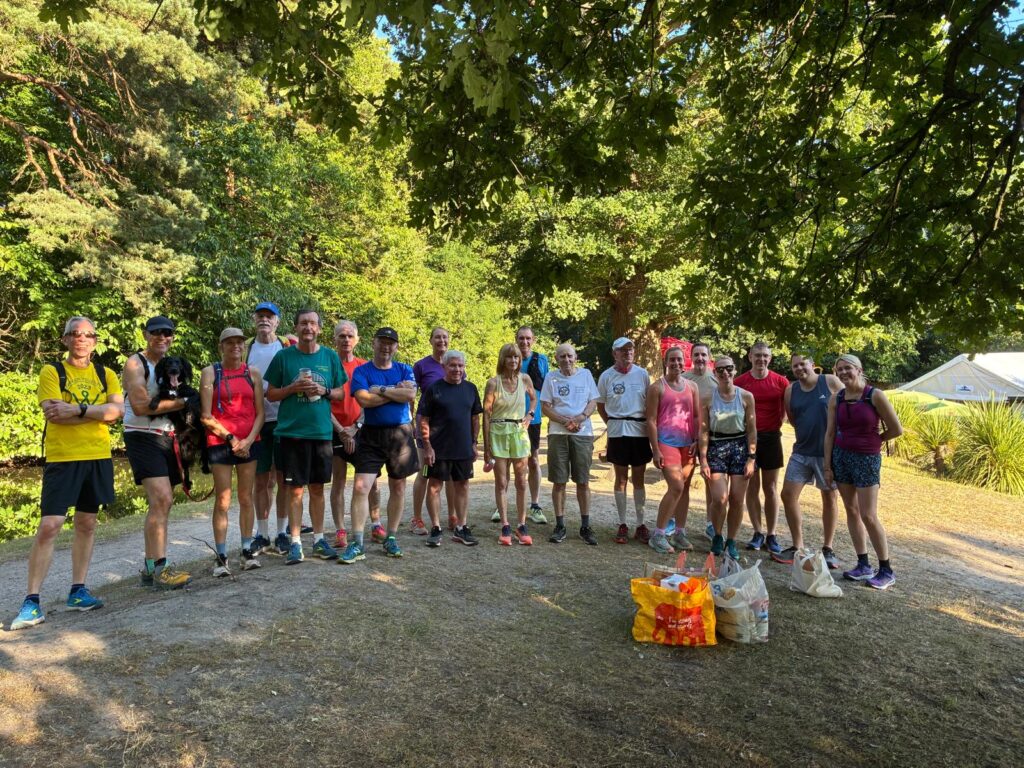 Thanks to Lynne and Lucie for leading everyone on a baking hot Thursday evening social run.  As you can see, everyone ran together as a big group… which is now standard for our Thursday evening runs. Usually, some of the faster runners break off the front, and loop back – but not on this occasion… simply too hot!